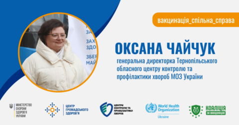 Інтерв’ю підготовлено в межах реалізації спецпроєкту «Вакцинація – спільна справа» виконується Коаліцією за Вакцинацію спільно з Міністерством охорони здоров’я України, Центром громадського здоров’я України та обласними центрами контролю та профілактики хвороб за підтримки World Health Organization Ukraine.