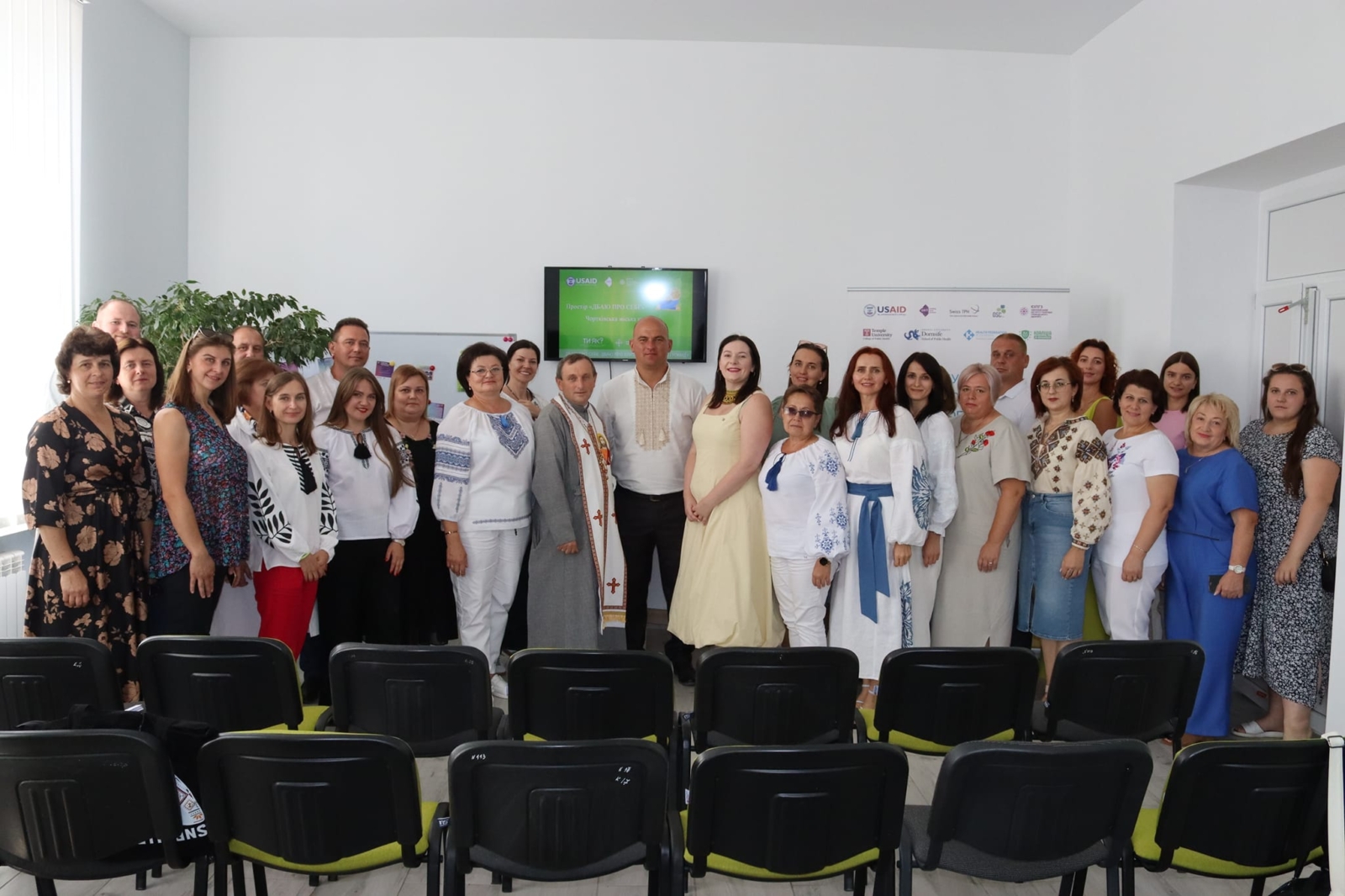 Марта Мельник керівниця напрямку психічне здоров’я, Олена Пугач фахівець психічного здоров’я, Антоніна Знахаренко координатор збору даних проєкту, міський голова Чорткова Володимир Шматько та його заступник Віктор Гурин, генеральна директорка ДУ “Тернопільський ОЦКПХ МОЗ України”, головна державна санітарна лікарка Тернопільської області Оксана Чайчук, завідувачка відділу промоції здорового способу життя ДУ “Тернопільський ОЦКПХ МОЗ України”, координаторка з психічного здоров’я у Тернопільській області проєкту Розбудова стійкої системи громадського здоров’я Наталія Харченко, керівництво Центру первинної медико-санітарної допомоги Чортківської міської ради Тетяна Овсинська, Світлана Грабовецька, медичний директор КНП “Чортківської міська центральна лікарня” Чортківської міської ради Денис Хаблак.