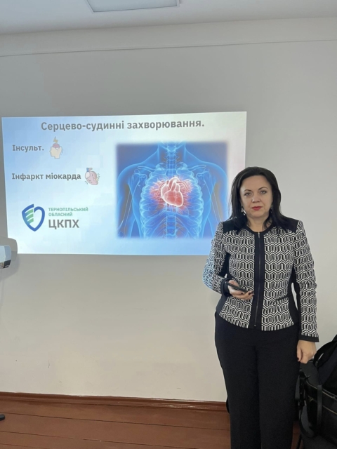 Паламар Олена, лікарка-епідеміологиня відділу епідеміологічного нагляду та профілактики неінфекційних захворювань ДУ «Тернопільський ОЦКПХ МОЗ» провела інформаційно-просвітницьку лекцію та презентацію на тему: «Серцево-судинні захворювання. Інсульти. Інфаркт міокарда».