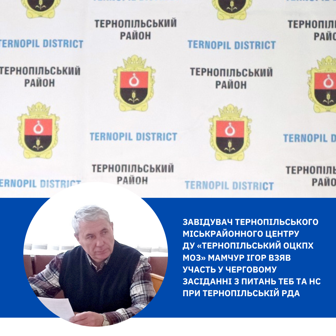 Завідувач Тернопільського міськрайонного центру ДУ «Тернопільський ОЦКПХ МОЗ» Мамчур Ігор взяв участь у черговому засіданні з питань ТЕБ та НС при Тернопільській РДА