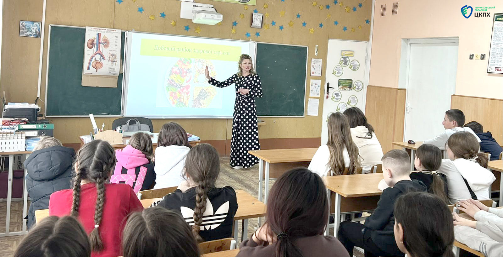 18 березня 2026Інформаційно-просвітницьку лекцію, спрямовану популяризувати здорове й збалансоване харчування у школі та поза школою та заохотити учнів до здорового харчування провела 18 березня завідувачка відділу епідеміологічного нагляду та профілактики неінфекційних хвороб Чортківського міськрайонного центру ДУ «Тернопільський обласний центр контролю та профілактики хвороб МОЗ» Людмила Дмитряк.