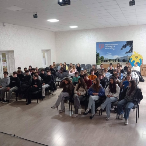 9 квітня 2026У Тернопільській загальноосвітній школі І-ІІІ ступенів №14 ім. Б. Лепкого відбулася надзвичайно цікава лекція лікарки-епідеміологині Олени Паламар на тему «Основи здорового харчування». Захід проведено в рамках шкільної інформаційно-просвітницької ініціативи #Пятькроківдоздоровогохарчування – «5 кроків до здорового харчування» у межах проєкту «Кожна школа – здорова школа».
