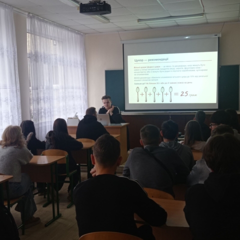 Під час заняття учні дізналися про приховані загрози, що пов’язані з надмірним споживанням цукру, солі та трансжирів. Обговорили такі важливі аспекти: