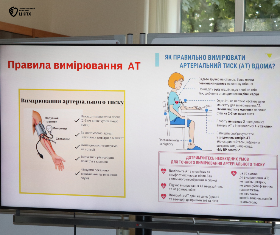 Під час майстер-класу спеціалісти відділу промоції здорового способу життя ДУ «Тернопільський ОЦКПХ МОЗ» розповідали про небезпеку артеріальної гіпертонії, її симптоми, поширеність, профілактику.